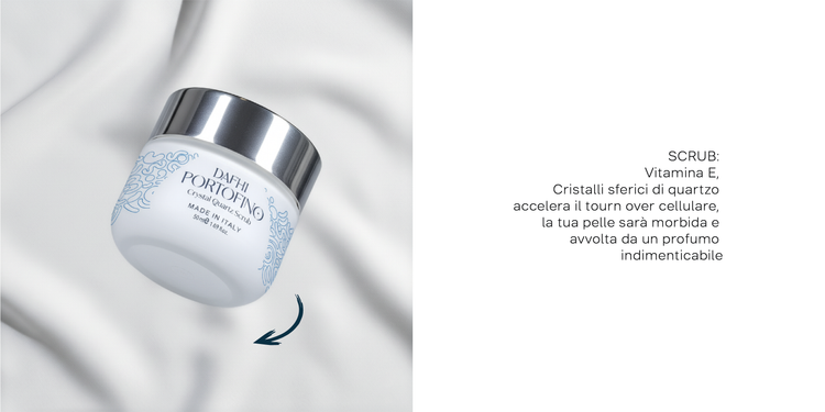 Ingredienti: Cristalli di quarzo brasiliano, rimuovono le cellule morte senza irritare. Vitamina E, garantisce il rinnovamento cellulare e l’azione antiossidante
