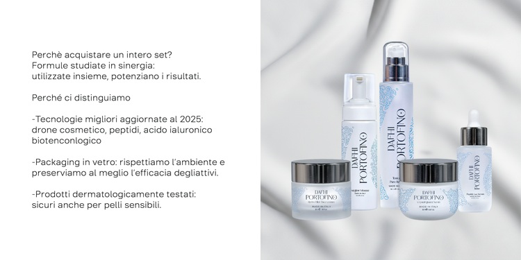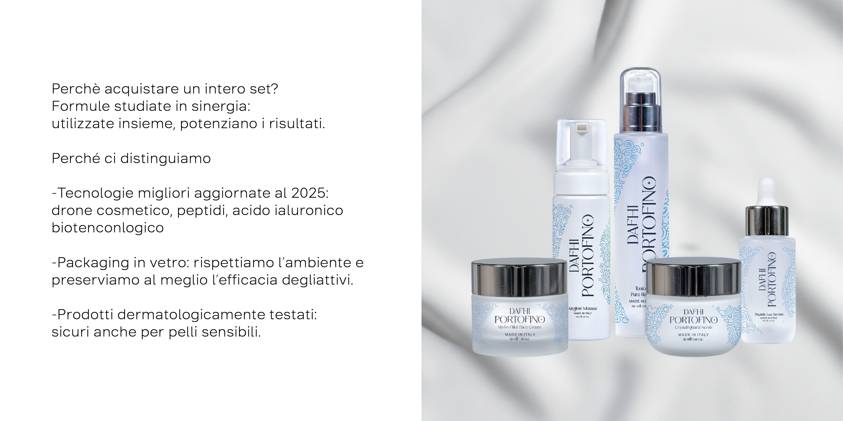 Con PORTOFINO FULL SET, ogni prodotto lavora in sinergia per trasformare la cura della pelle in un’esperienza di lusso quotidiana, lasciandoti con una sensazione di benessere e bellezza che dura nel tempo.